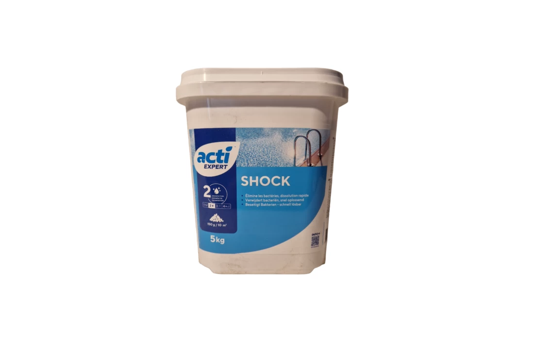Het gehalte aan vrij chloor ligt tussen 1,5 mg/L en 3,5 mg/L (DPD1). voor een opstart of schokbehandeling bij groen water: 150 g/10 m3 toevoegen. Giet het product rechtstreeks op verschillende plaatsen in het zwembad of in de zone voor de sproeikoppen voor een betere verdeling. dit MOET gebeuren wanneer er geen baders zijn en het filtratiesysteem werkt. in een SPA moet voor schokchlorering 20 g/1000 L rechtstreeks aan het water worden toegevoegd en dit MOET gebeuren in afwezigheid van baders met het filtratiesysteem in werking. Â