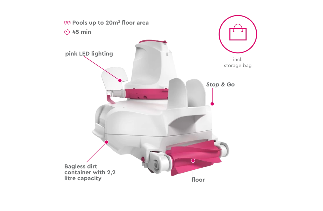Deze compacte draadloze zwembadrobot heeft een actieve borstel en reinigt de bodem van jouw zwembad binnen 45 minuten. Daarnaast is er geen kabel nodig voor deze handige zwembadrobot.