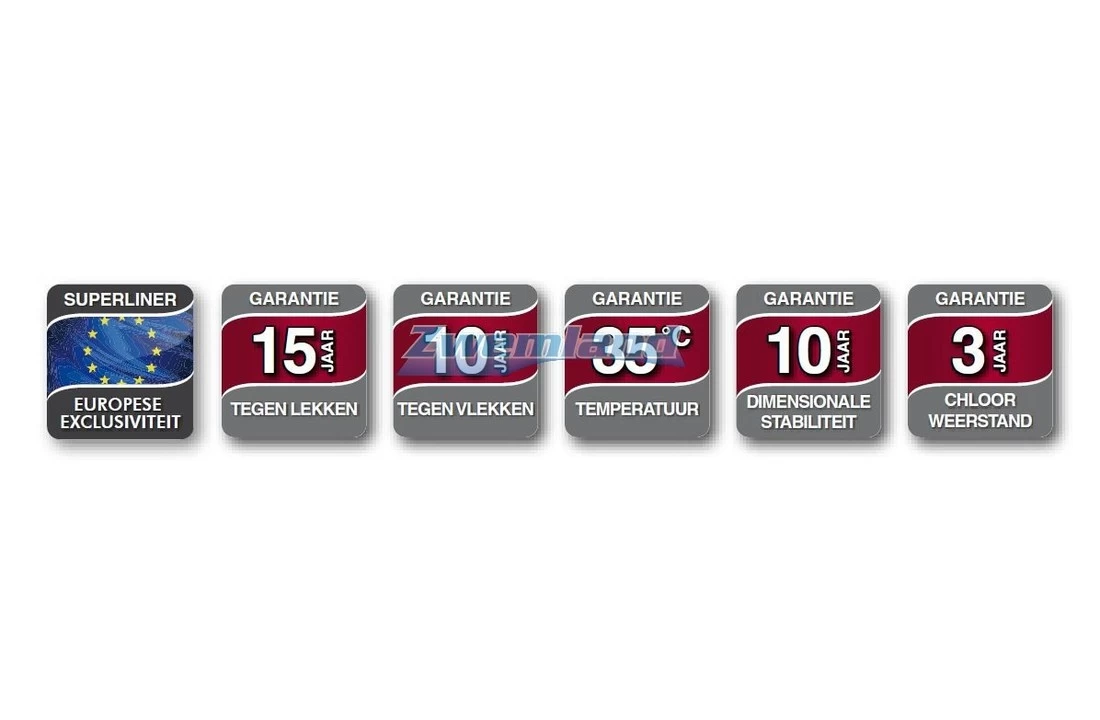 - Garantie op chloorbestendigheid: 3 jaar, bij 3 PPM.
