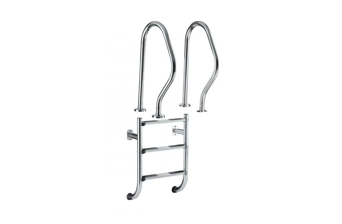 De 2-delige zwembadtrappen zijn van AISI-316 staal en hebben een ø 43 mm buis.