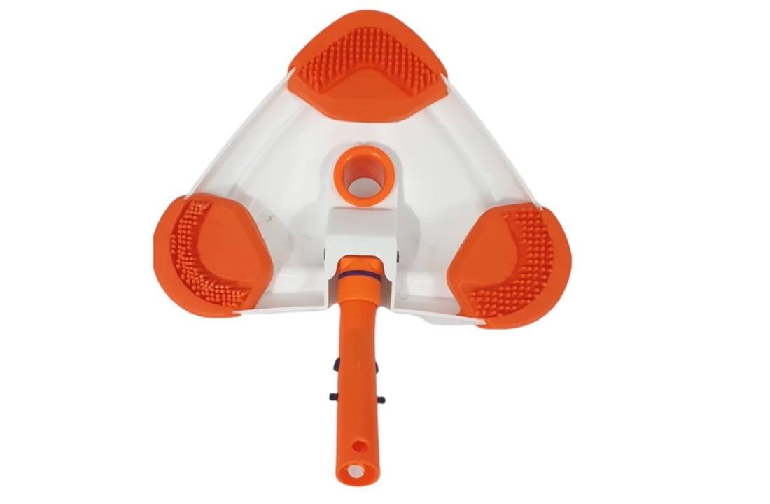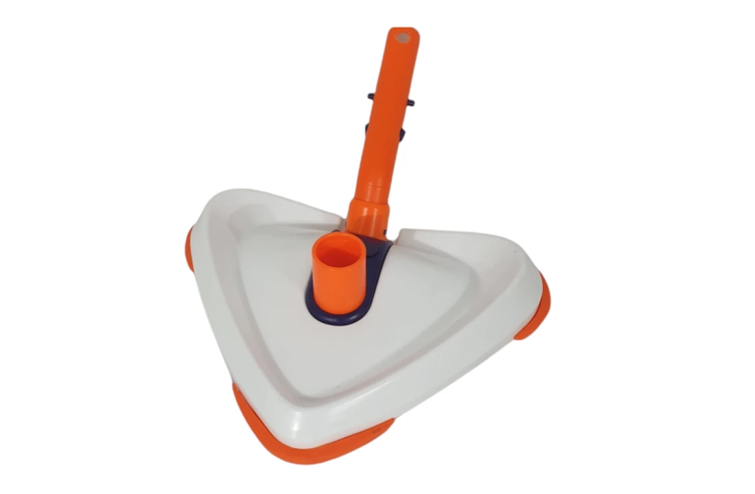 Driehoekige bodemzuiger met siliconen stukken aan de onderkant, hierdoor is het vuil makkelijker los de krijgen van de bodem.
