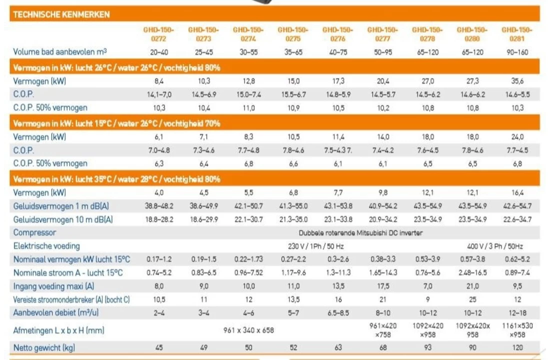 Garden PAC Garden Pac Inverter R32 20.4kW 220v 50-95m3 Zwembad Warmtepomp