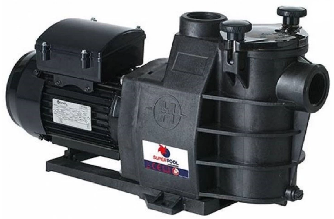 Zwembadpomp met voorfilter en pompmand. Het voorfilter met pompmand dient als eerste opvang van vuil. In het voorfilter zit een pompmand die bladeren en kleine grove vervuiling zal tegenhouden. Deze pomp is semi-zelfaanzuigend, dit wil zeggen dat als het voorfilter gevuld wordt met water, de pomp zelfaanzuigend zal zijn. Deze zal nu het water aanzuigen vanuit het zwembad. De pomp dient om het water door het filter te pompen en om het filter terug te kunnen spoelen. Tevens dient de pomp ervoor om het water te laten circuleren en zodoende de chemicaliën goed te vermengen en te verdelen. De pomp zorgt ervoor dat het water contant in beweging blijft, waardoor de groei van bacteriën wordt tegengegaan. De pomp biedt goede bescherming tegen chemische- en zoutcorrosie, waardoor de pomp ook geschikt is voor zoutwaterbaden en te combineren is met zoutelektrolyse.Â