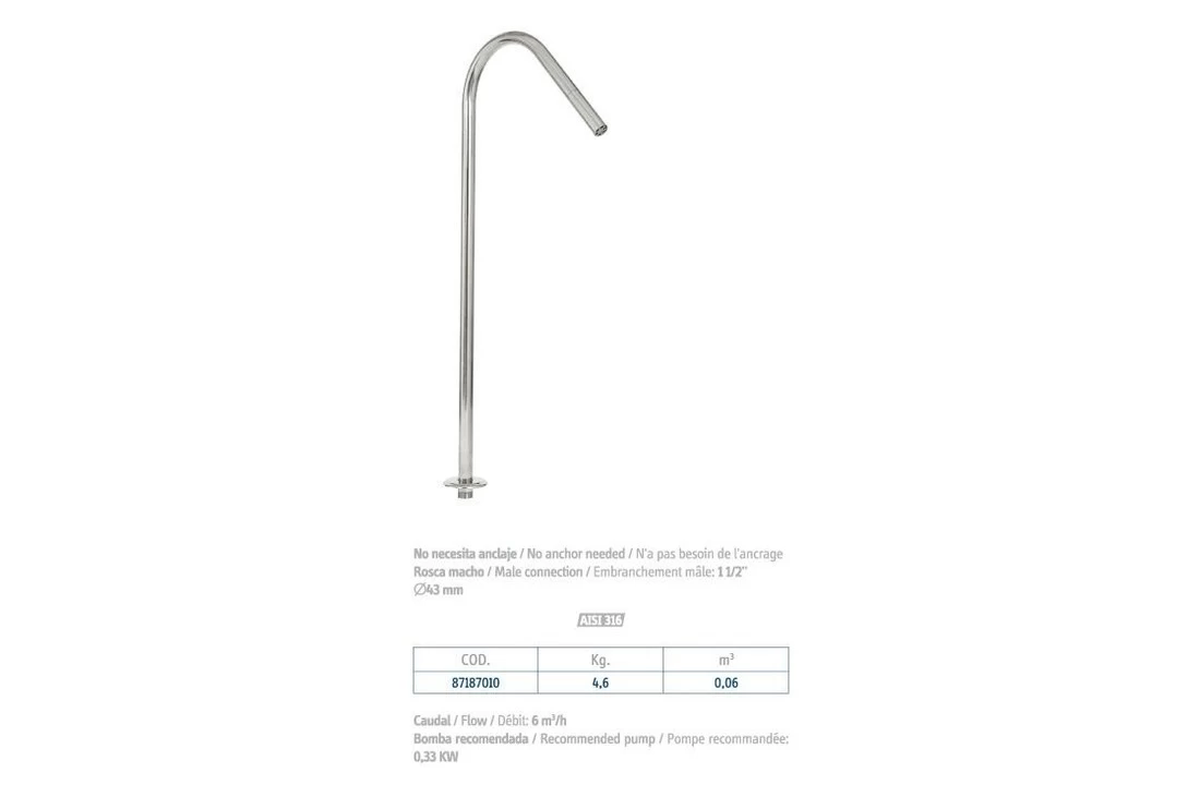 Aansluiting mannelijk 1”1/2. Geen bevestigingsanker nodig.