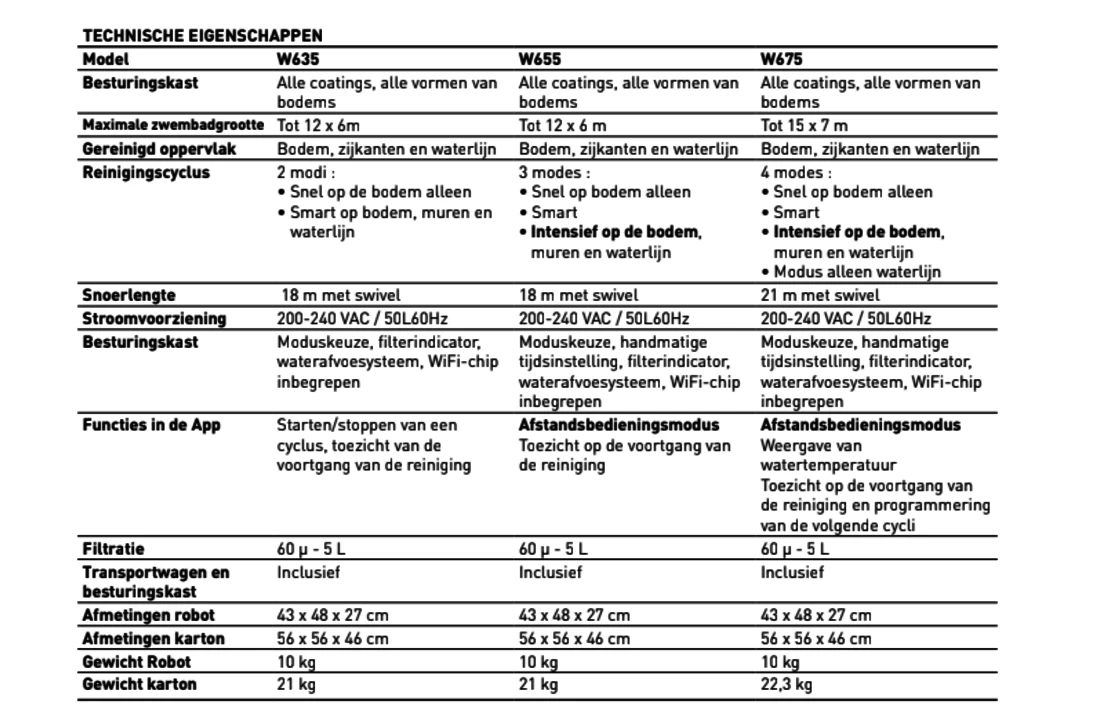 Polaris zwembadrobot specificaties